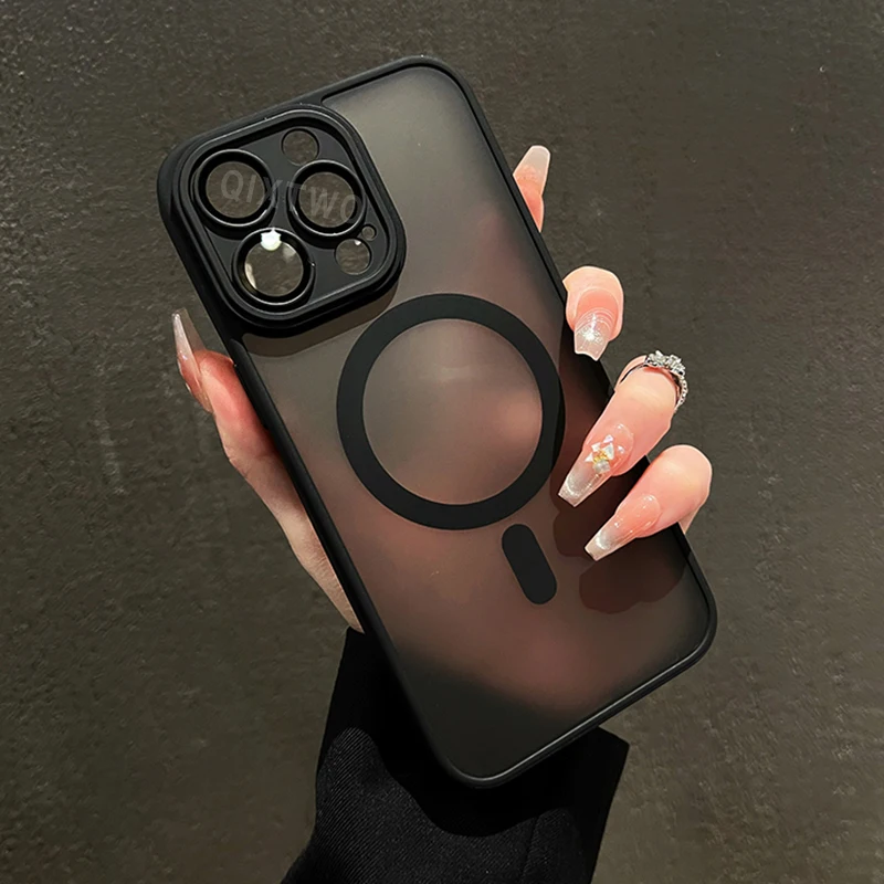Luxury Matte Armor For Magsafe Magnetic Wireless Charging Case For iPhone 11 12 13 14 15 16 17 Air Pro Max Plus Shockproof Cover